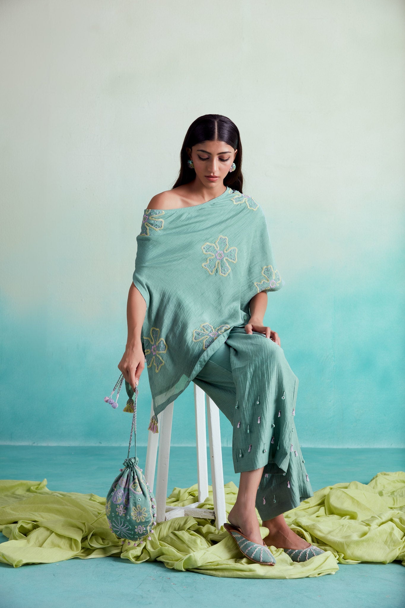 Mintella co-ords - Mint Hand embroidered Off-shoulder Co-ord set
