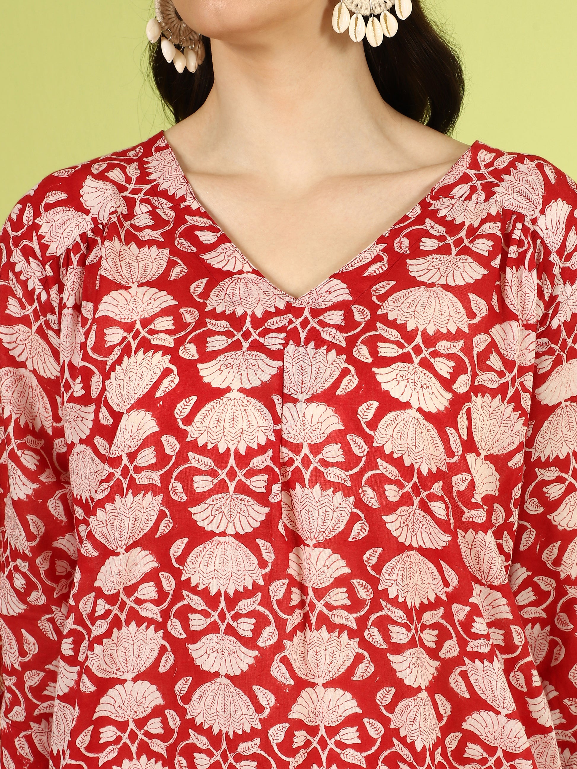 Hand block printed with delicate lotus motifs on airy cotton, it’s made to move with ease. Wear it on its own for a light, effortless look, or throw it over swimwear for an easy, beach-ready vibe. Added Function: Pockets for comfort and utility"