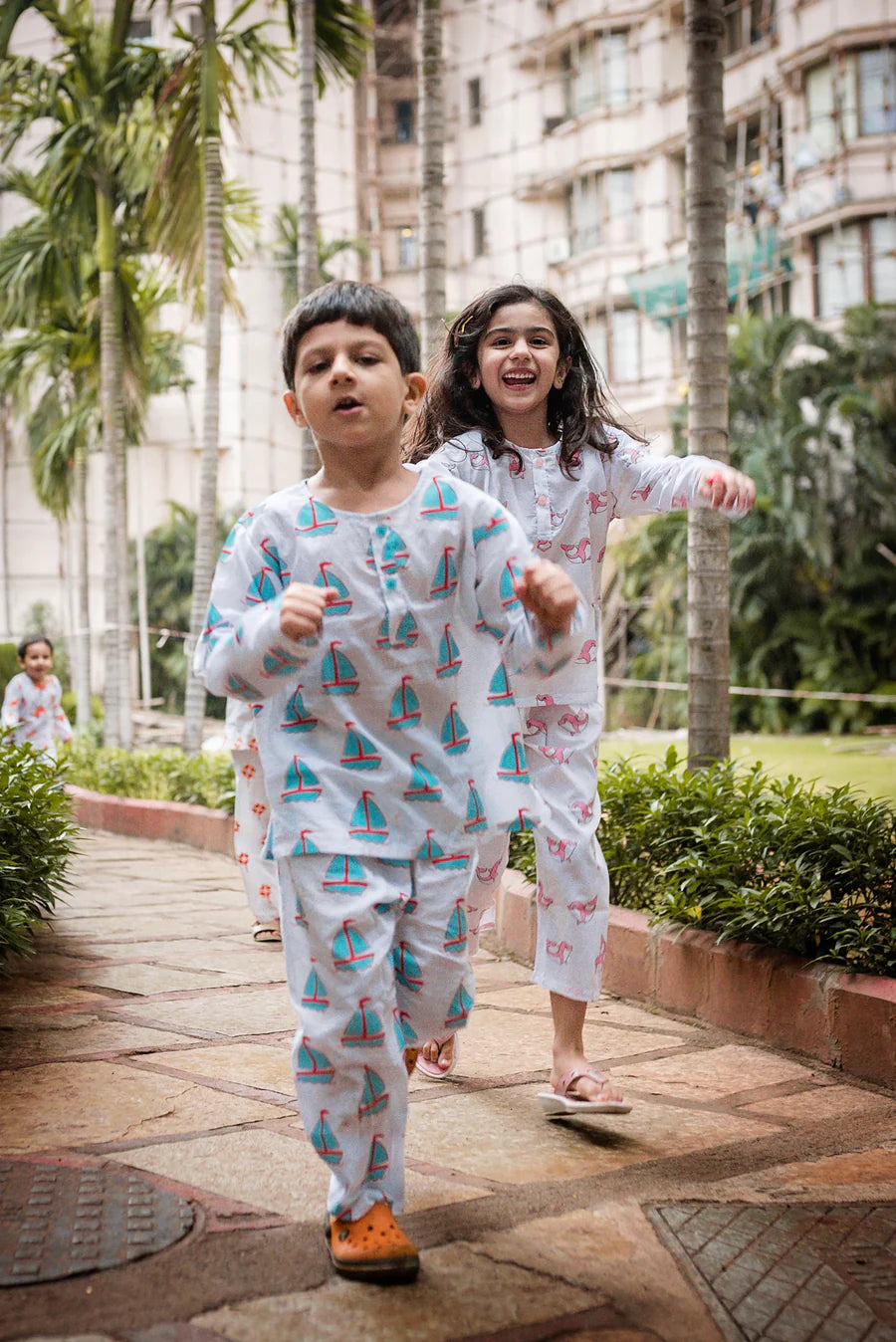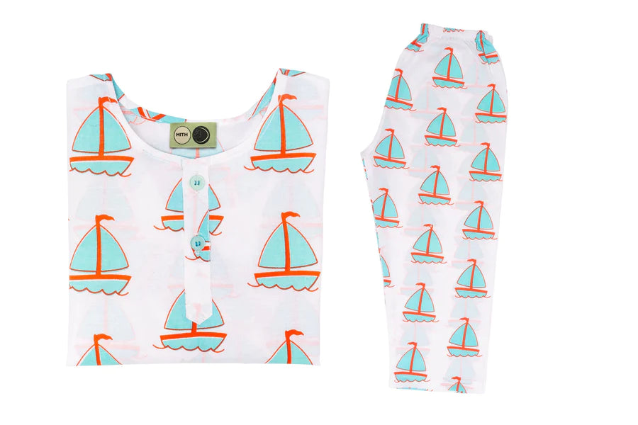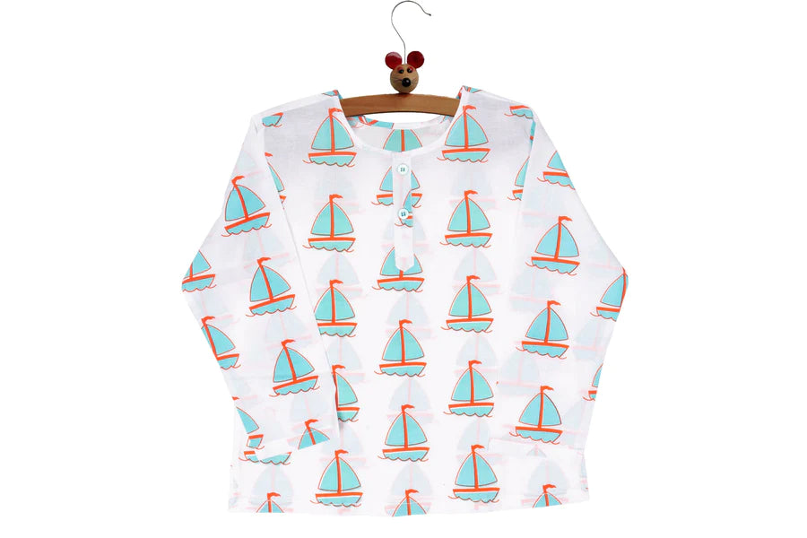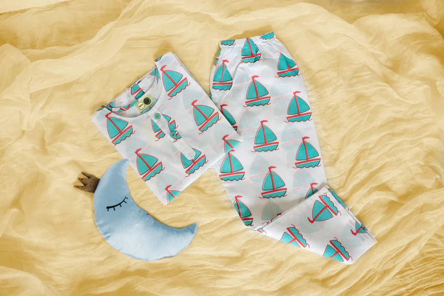 'Sailboat' print Nightdress is designed keeping your child's comfort in mind from play time to nap time. Unrestricted by Gender they are made from breathable cotton. Light and breezy they are perfect second skin for all weather. Welcome the Kindest wearables for your little Mouselings.